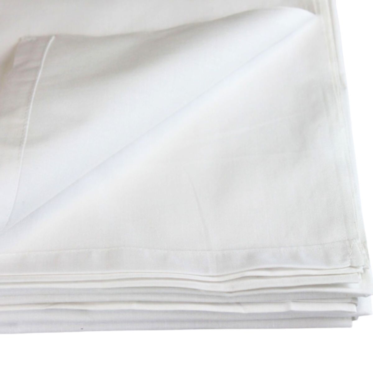 Our white polycotton bed sheets measure 180cm x 275cm, fitting standard single beds perfectly. Ideal for healthcare settings that require frequent bed changes, they offer reliability and ease of care. This flat polycotton bed sheet is also available in extra-long size (which measures 178cm x 300cm). Suitable for hospital beds and hospital beds used for home care.
