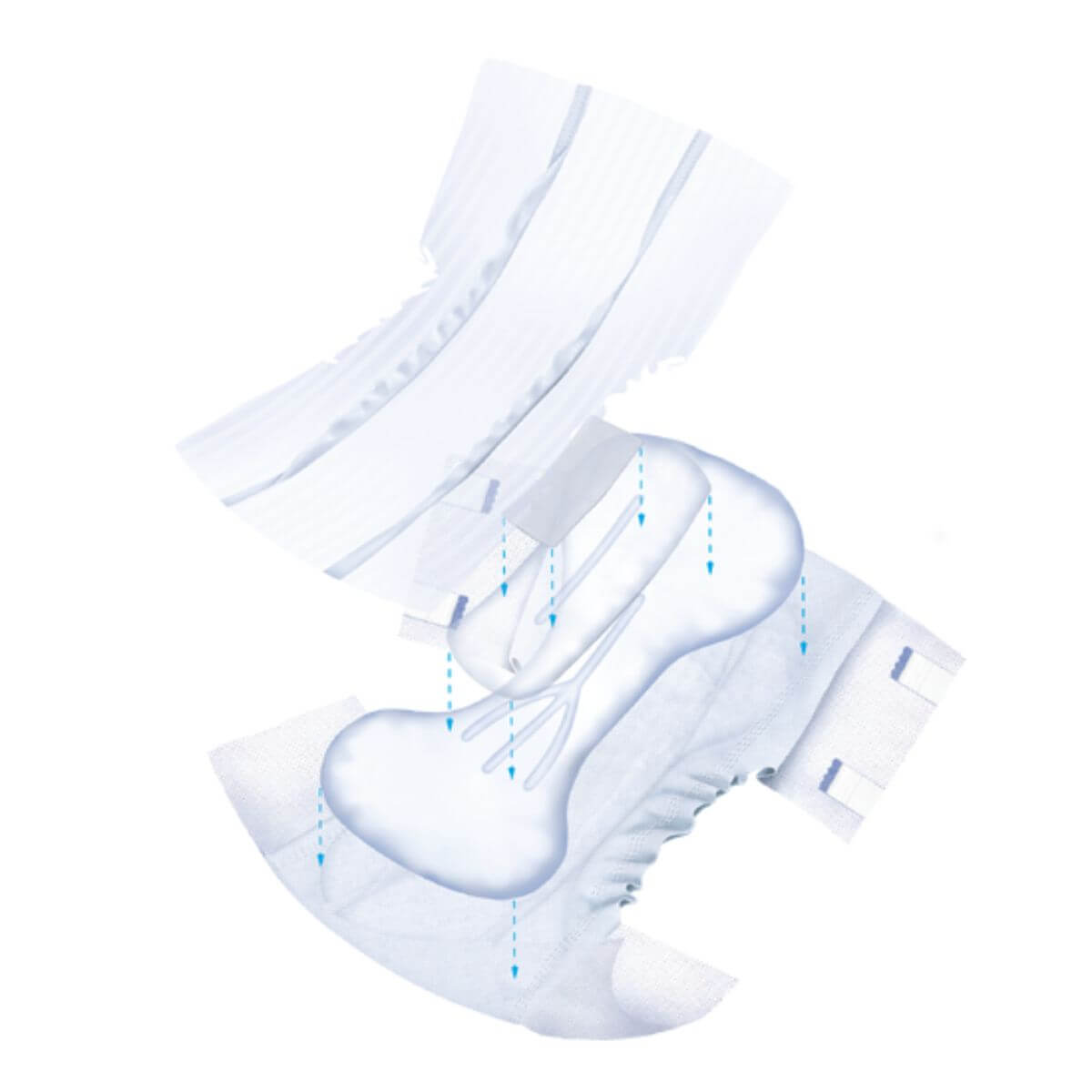 Advanced absorption technology – Specialised channel construction quickly draws fluid away from the skin for rapid absorption and lasting dryness, helping to minimise leaks.