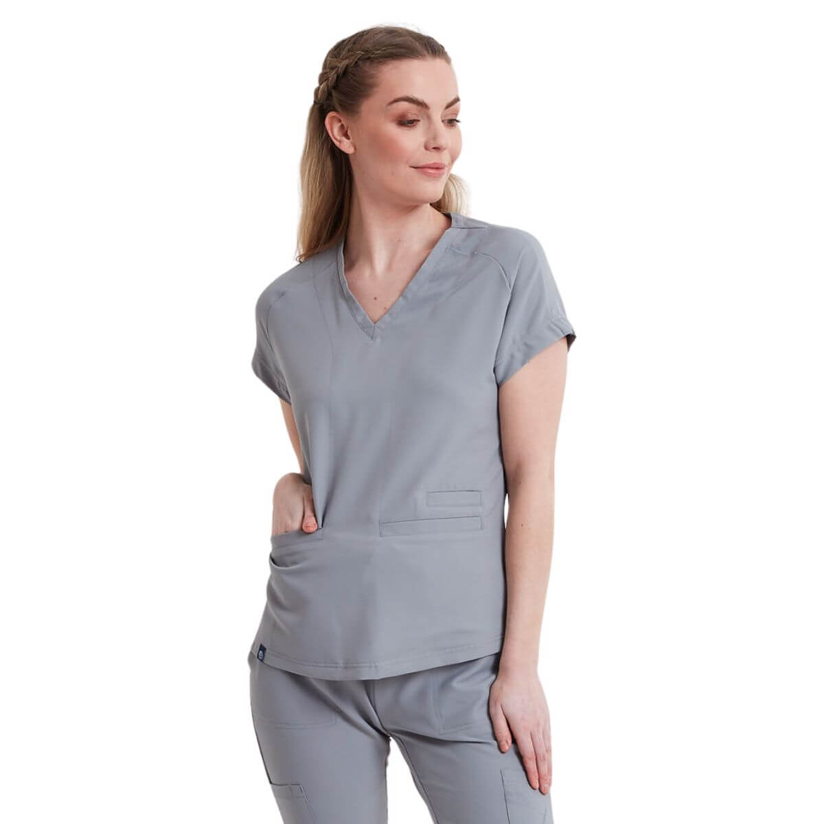 Practical yet stylish: With a relaxed, unisex V-neck, raglan sleeves, and multi-functional pockets, this top delivers comfort and utility for dentists, nurses, clinicians, or care-home staff.