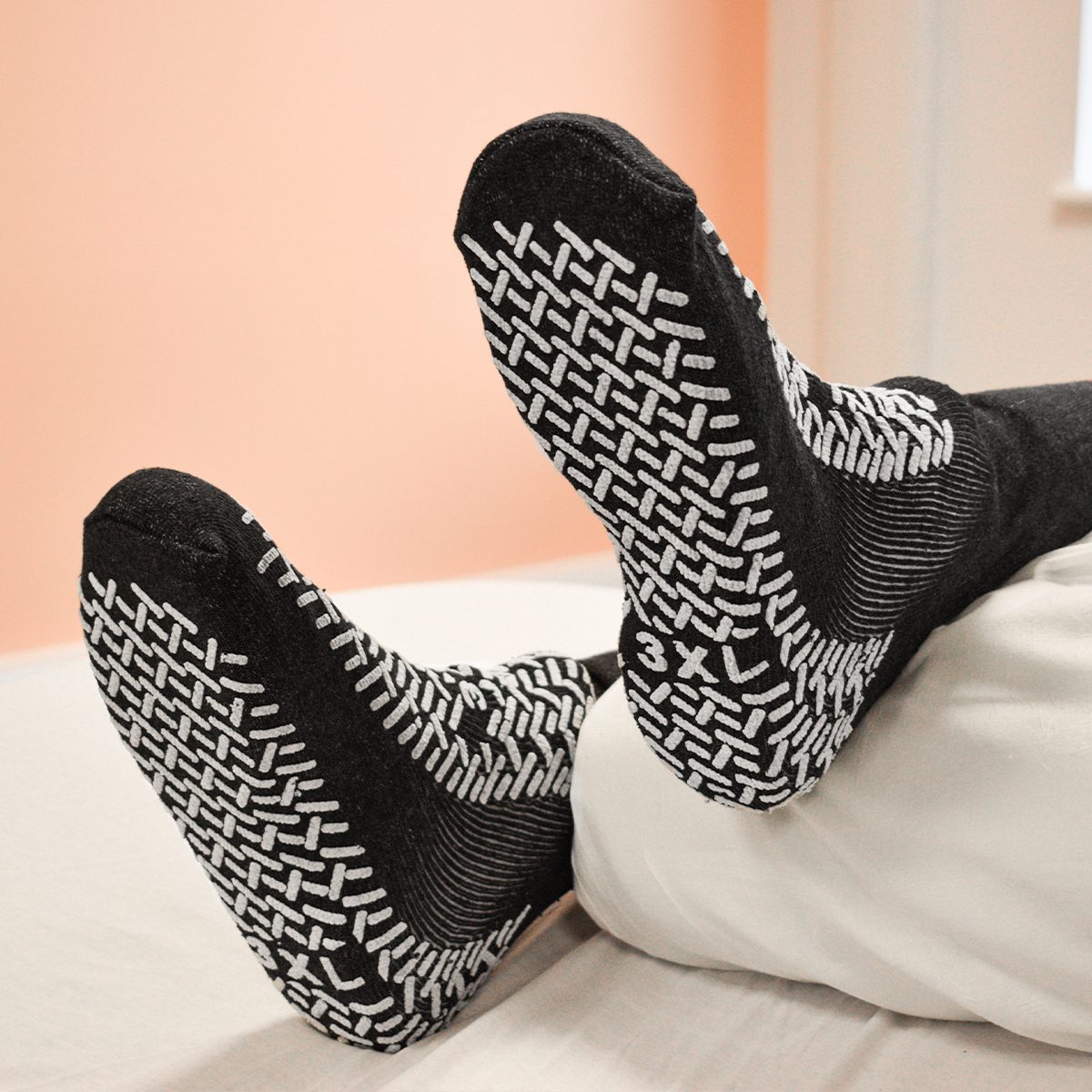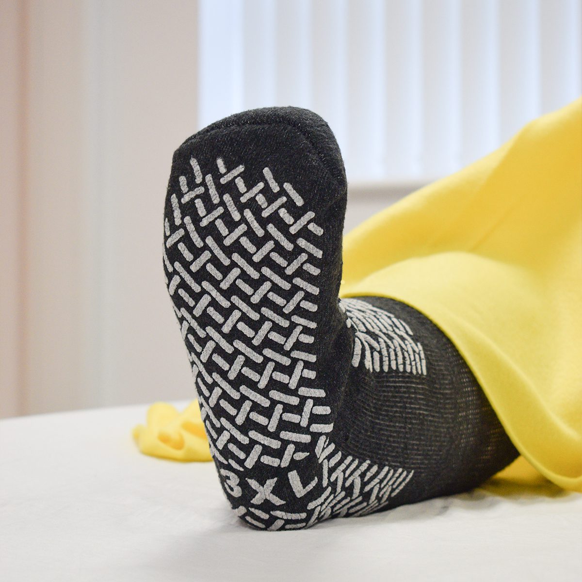 Patients with larger legs and ankles can benefit from 3XL slipper socks. These 3XL bariatric hospital socks are available in dark grey and are latex-free. Suitable for those with latex allergies. The socks are not suitable for hospital laundering; these socks are a patient-specific product. Check the Size Guide to find out whether the measurements are right for your needs.