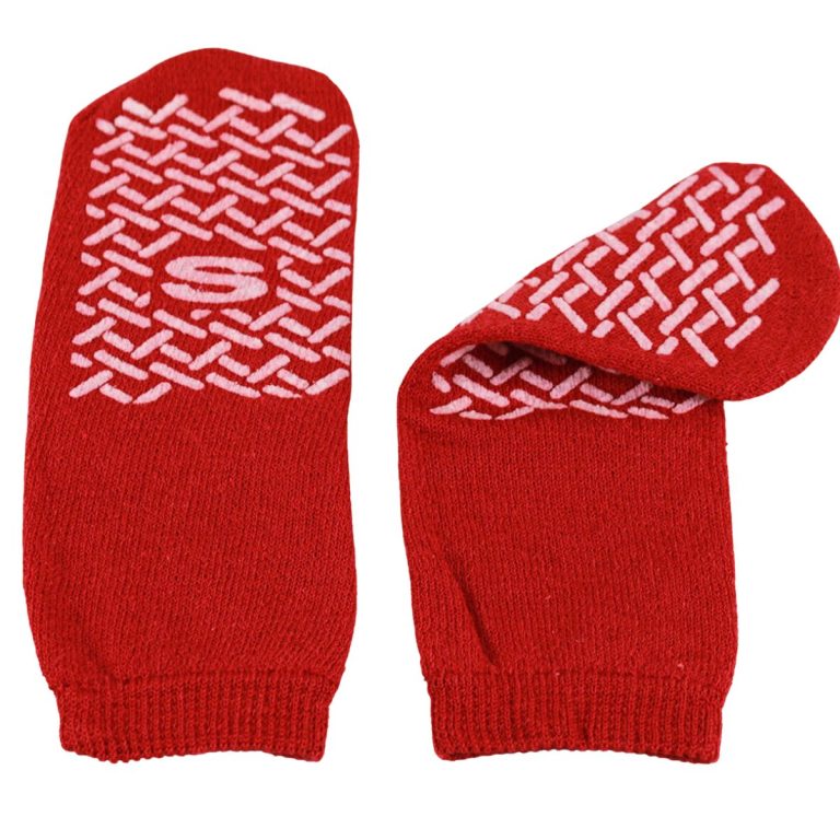 Please note that these double tread non slip socks are colour-coded to help NHS staff find the right size for a patient quickly; therefore, the socks aren’t available in a range of colours per size. The small socks are available in red only. These non slip socks for toddlers are available from S to 3XL, view the full range.
